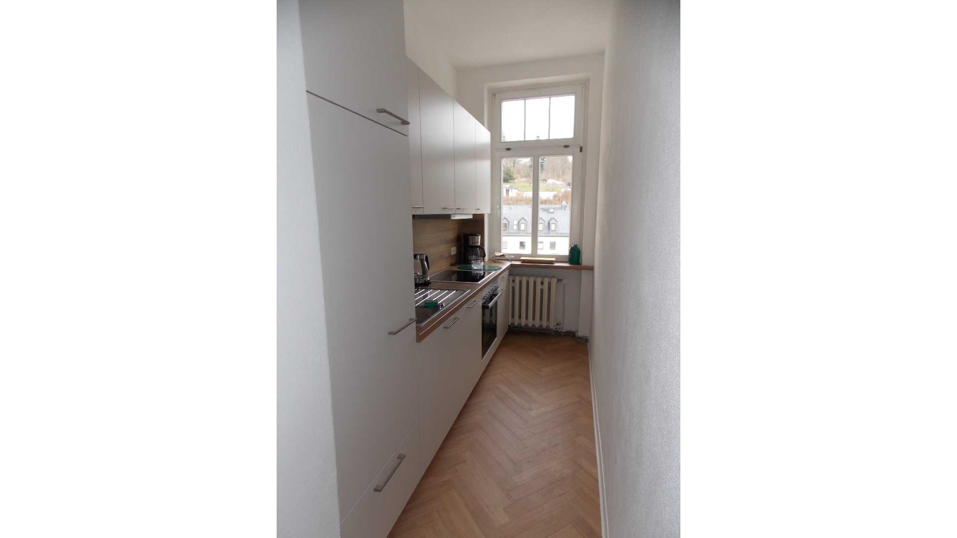 Eine gut ausgestattete Küche kann im Zusammenhang mit unserer „Guten Stube" genutzt werden.
